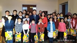 Сүлүктү шаарында окуучуларга жаңы жылдык белектер тапшырылды